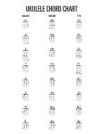 Each page includes both standard notation and ukulele tablature staff, making it easy to write melodies, chords, and fingerstyle arrangements. The book also features a helpful ukulele chord chart for quick reference — an essential tool for players of all levels.